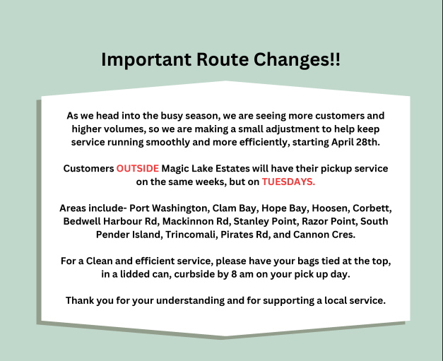 For Household Recycling, please go to the Pender Island Recycle Depot
